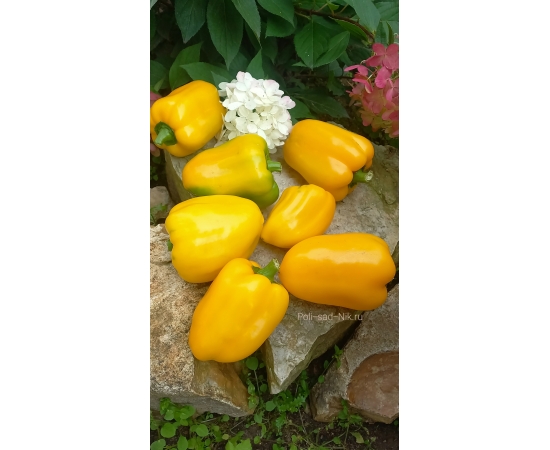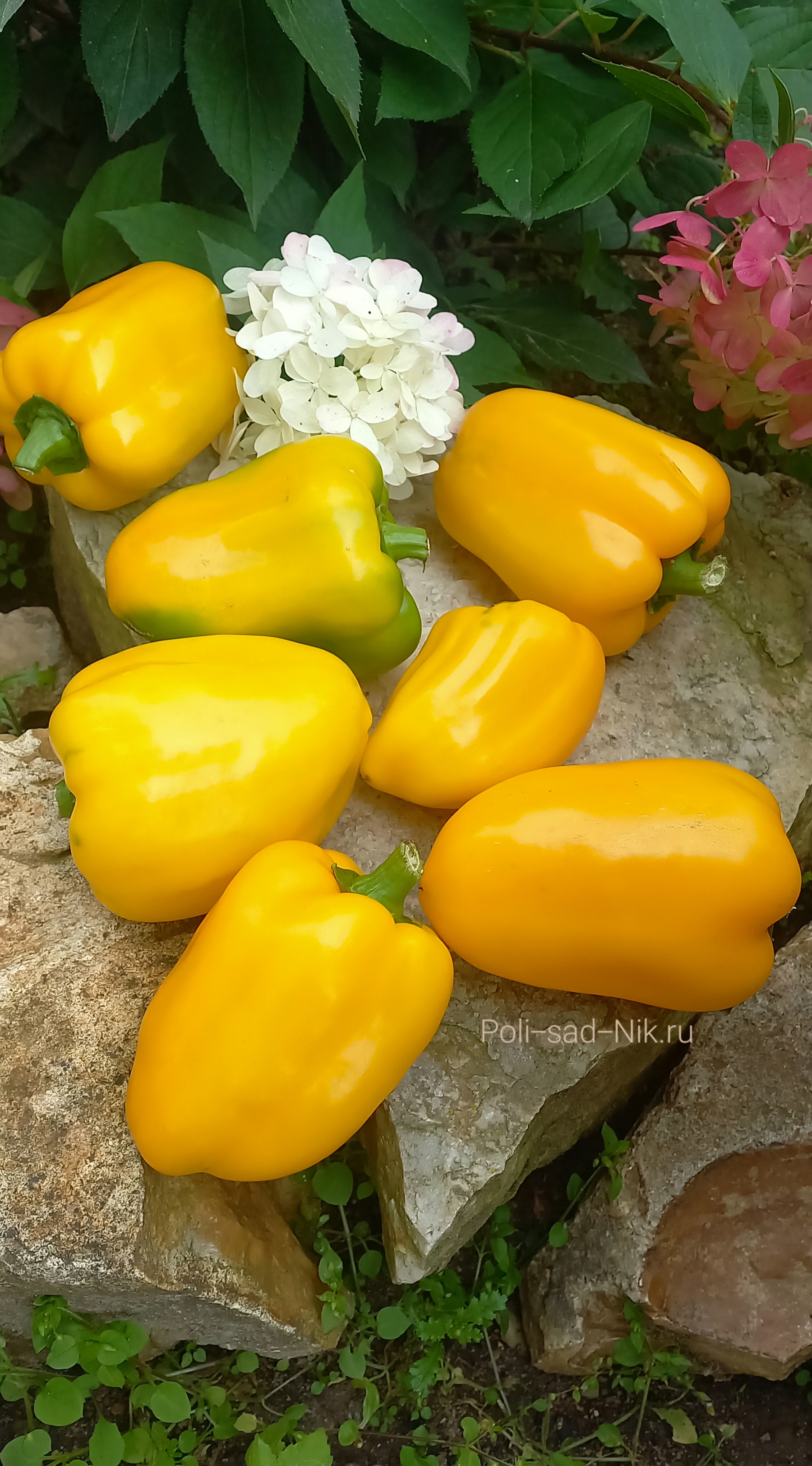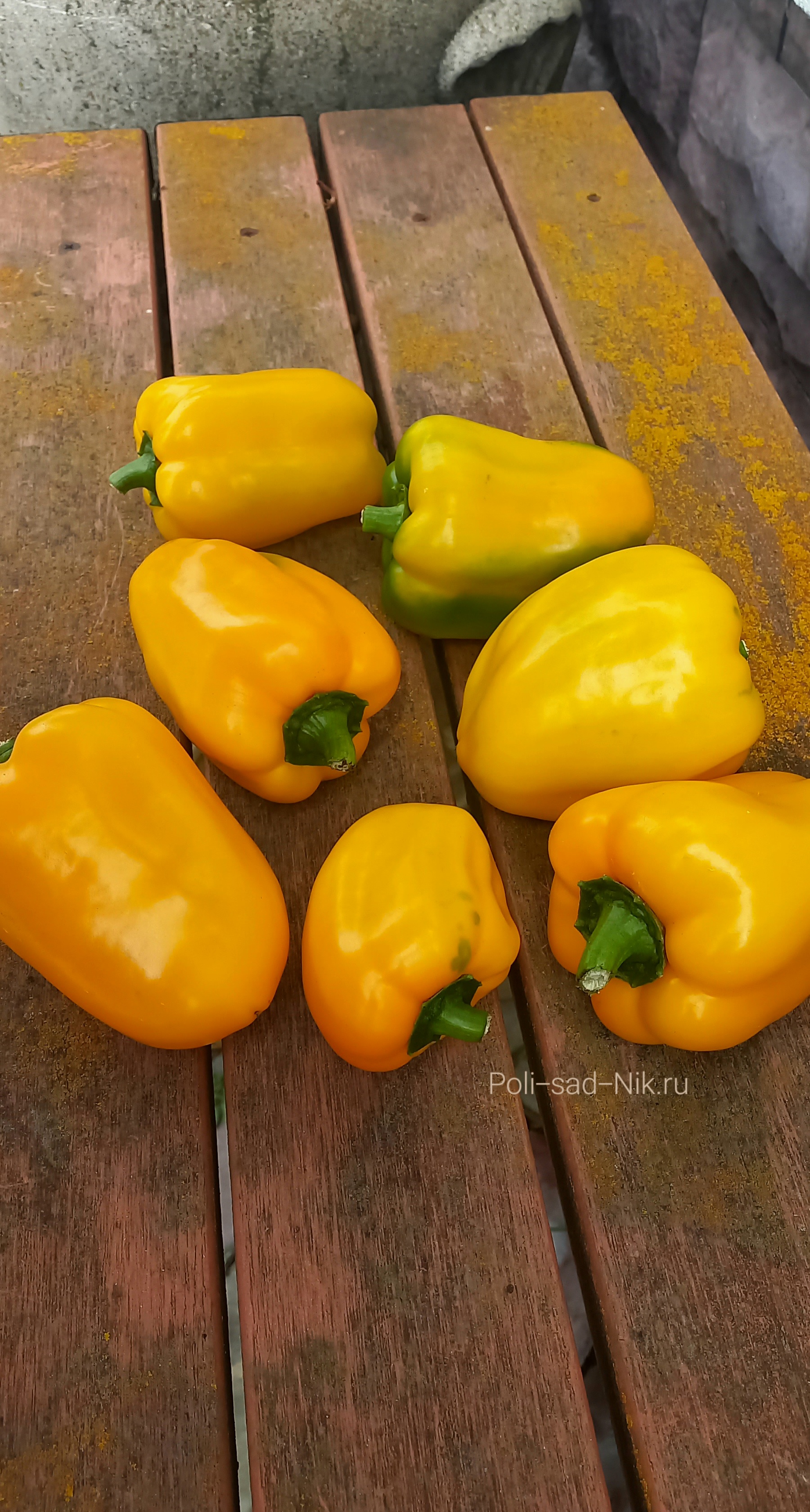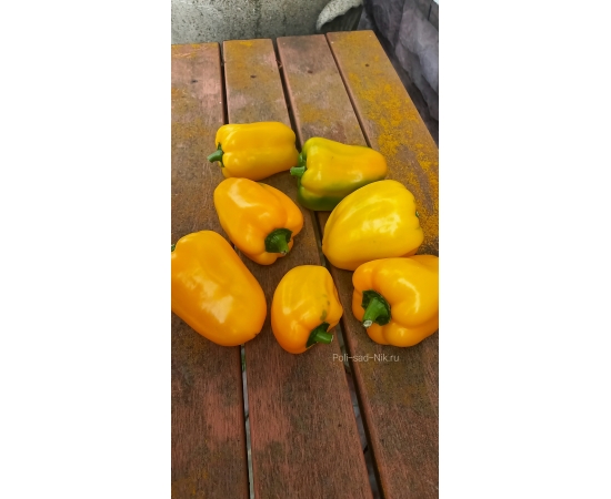 Сорт среднего срока созревания. Растение высотой около 70 см. Плоды сладкие, сочные, крупные, ярко жёлтого цвета, кубовидной формы. Массой до 250 гр. Толщина стенки 8-9 мм. Урожайность очень высокая.Сорт универсального назначения.