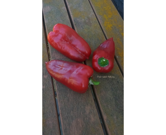 Сорт среднего срока созревания.Куст высотой около 70 см. Плоды тёмно красного цвета. Массой до 250 гр. Мякоть плотная сладкая.хрустящая. Толщина стенки 5-7 мм. Сорт неприхотливый, устойчивый к заболеваниям.Универсального назначения.