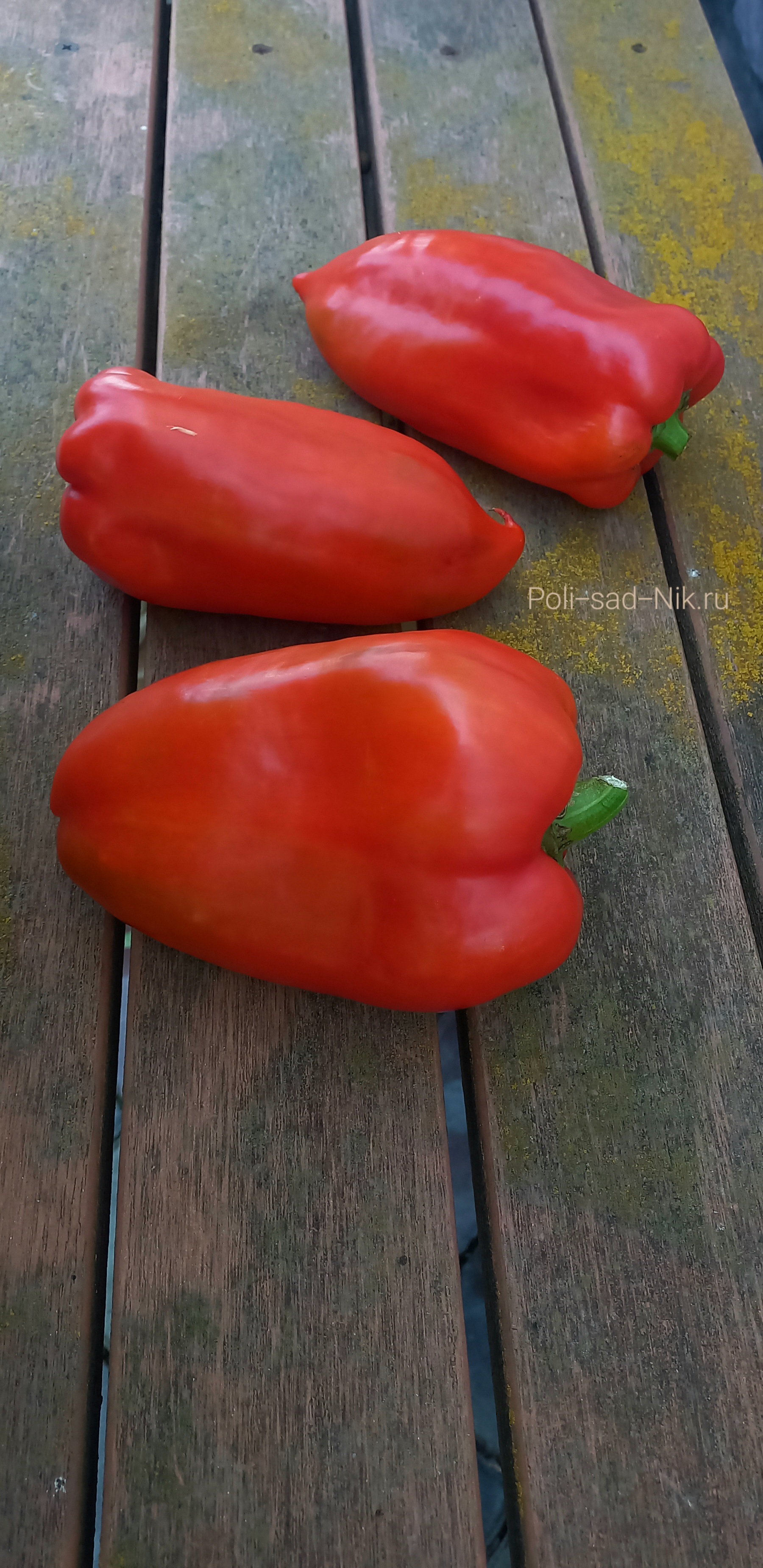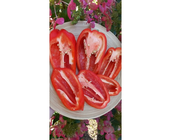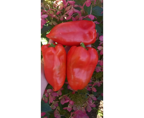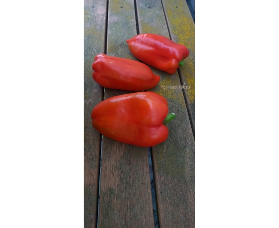 Сорт среднего срока созревания. Куст высотой около 70 см.Плоды красного цвета, крупные массой до 300 гр. Вкусные, ароматные толщина стенки 7-8 мм.Универсального назначения.