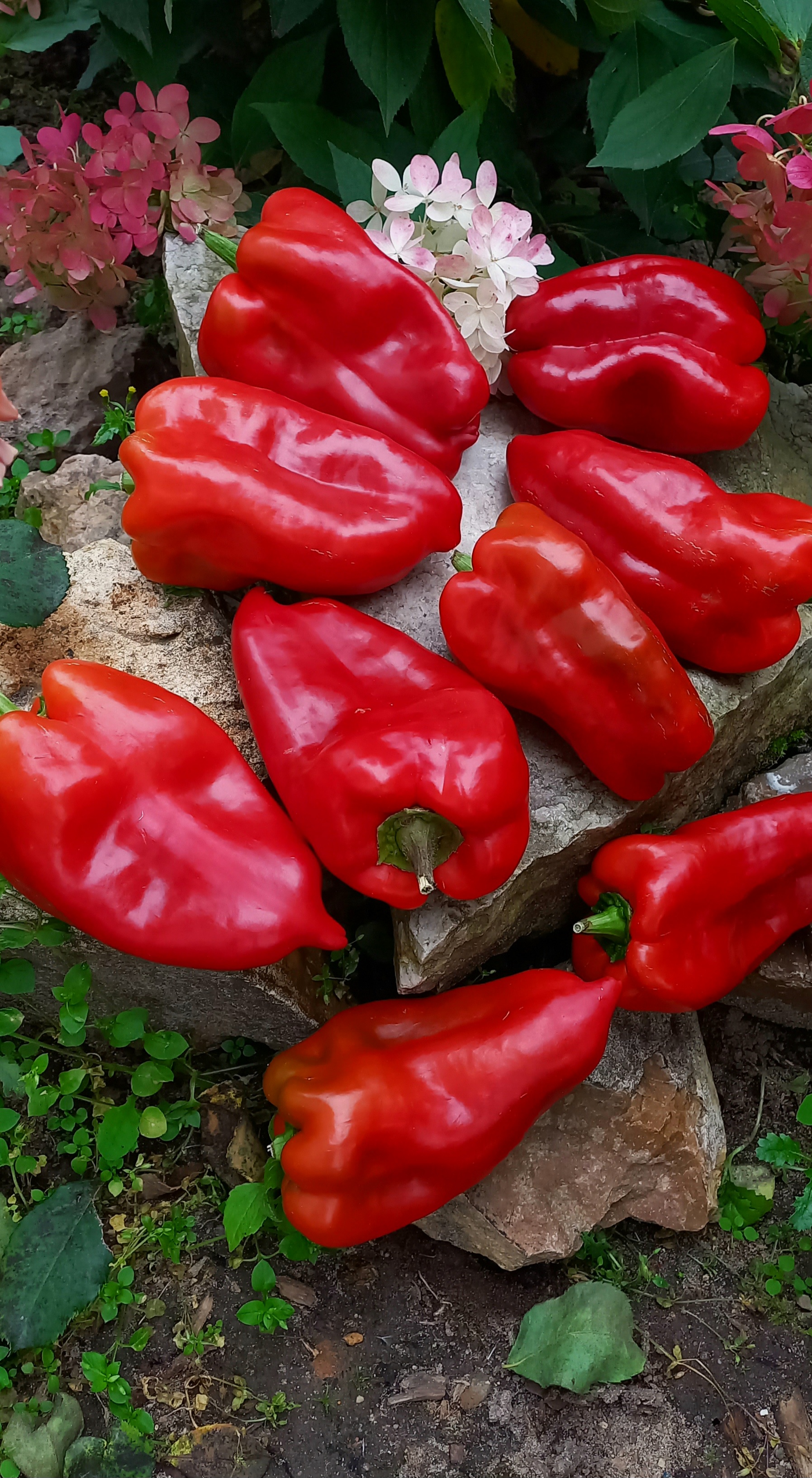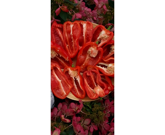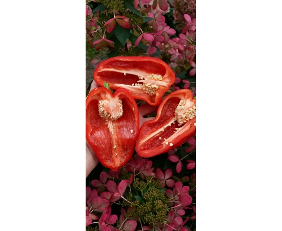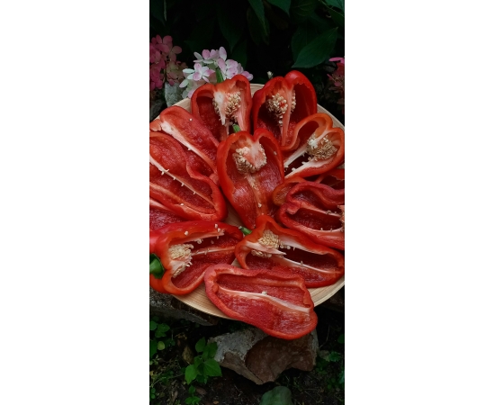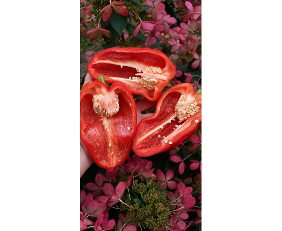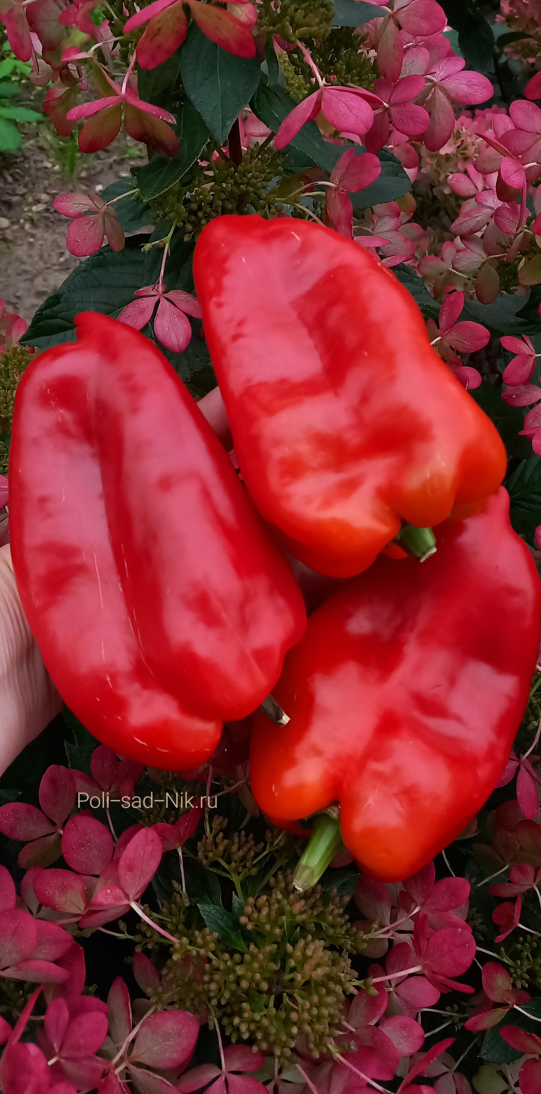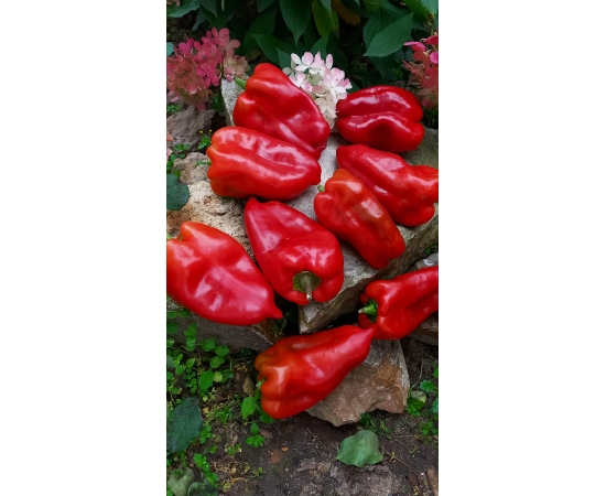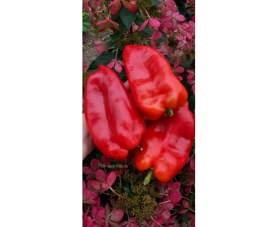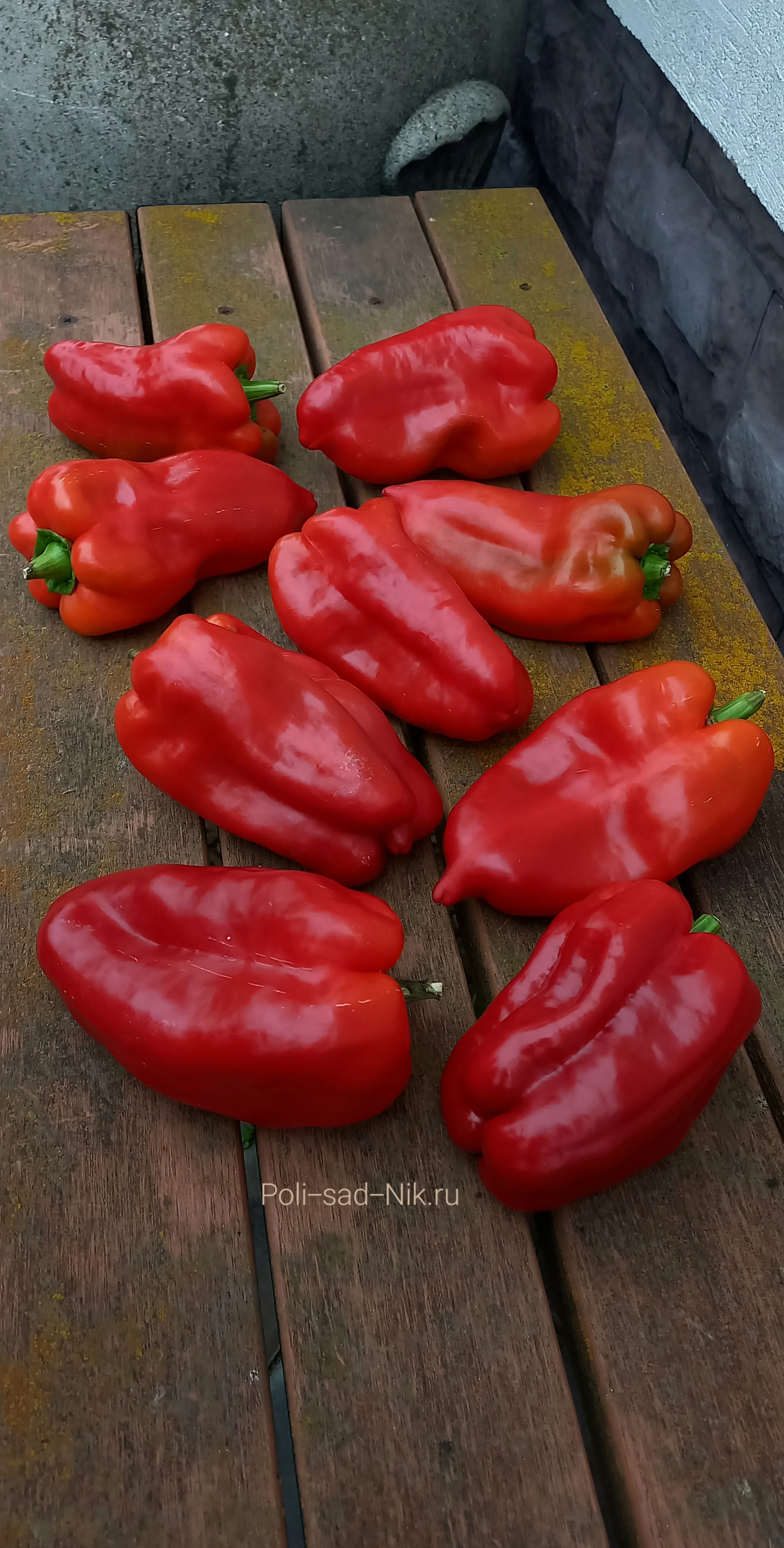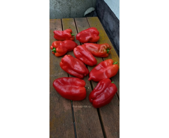 Среднеспелый, крупноплодный сорт. Растение высотой до 70 см. Плоды красного цвета массой до 250гр, вкусные, удлиненно-призмовидной формы.Толщина стенки 7-8 мм.