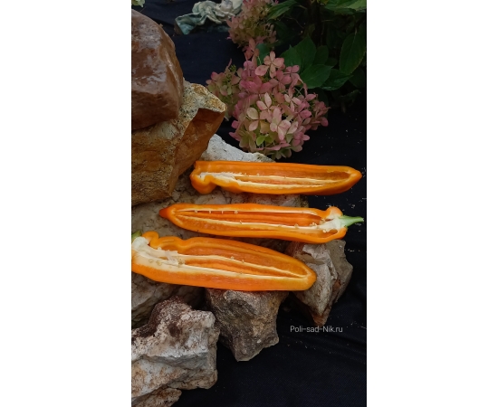 Среднего срока созревания. Куст высотой до 70см, среднеоблиственный, тонкого строения. Плоды цилиндрические, длинные до 30 см. с толстой сочной стенкой 4-5 мм и малым количеством семян. Мякоть сладкая, очень ароматная и вкусная. Хорош в свежем виде и отлично подойдёт для гриля.Урожайность отличная!