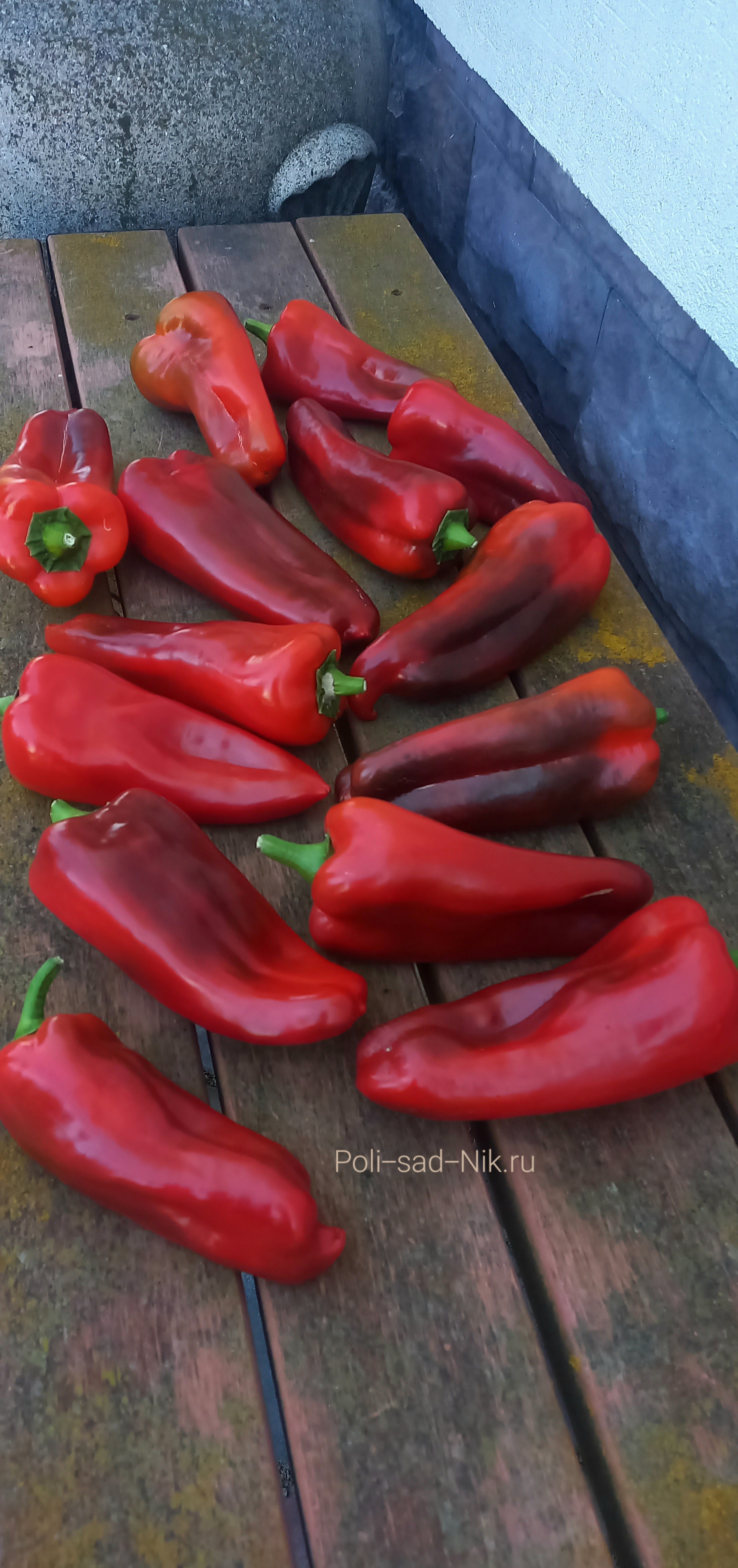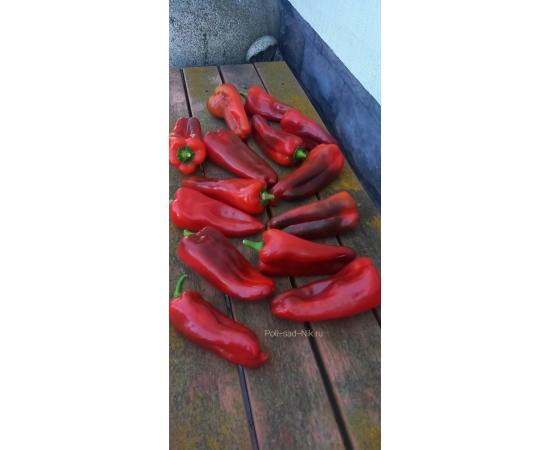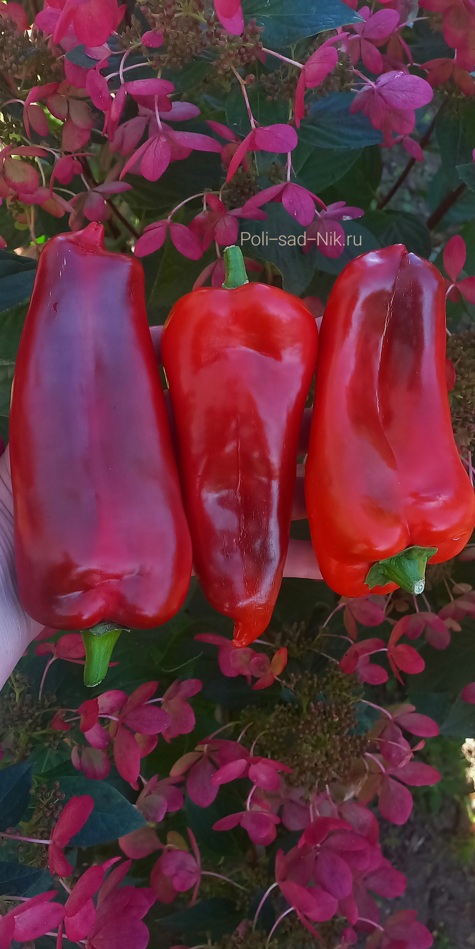 Среднего срока созревания. Куст высотой около 80 см. Плоды тёмно красного цвета.Массой 200-300 гр. Вкусные, сочные, ароматные, толщина стенки 7-8 мм. Сорт очень урожайный.Один из фаворитов сезона 2025!