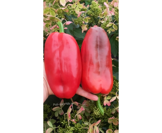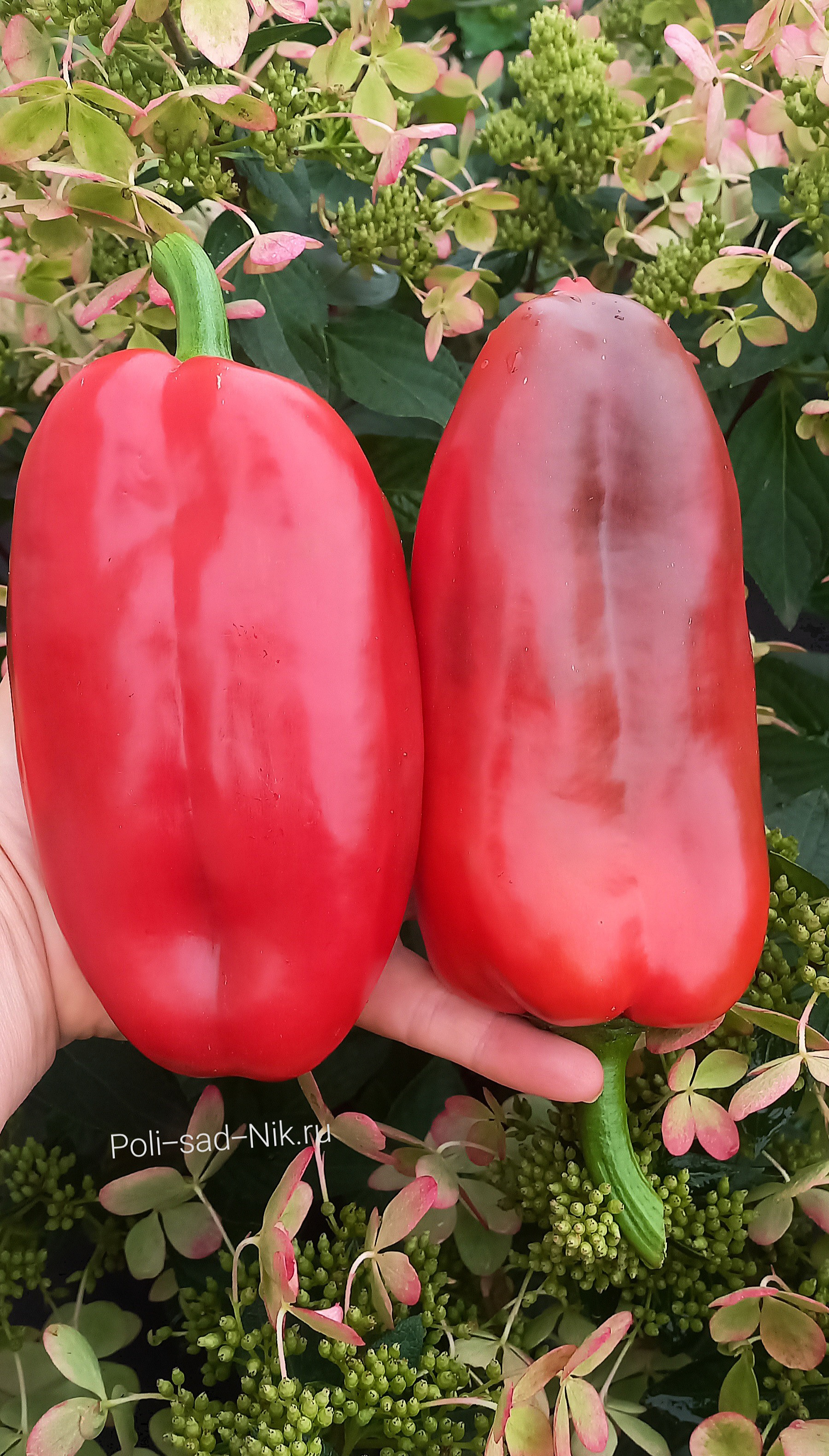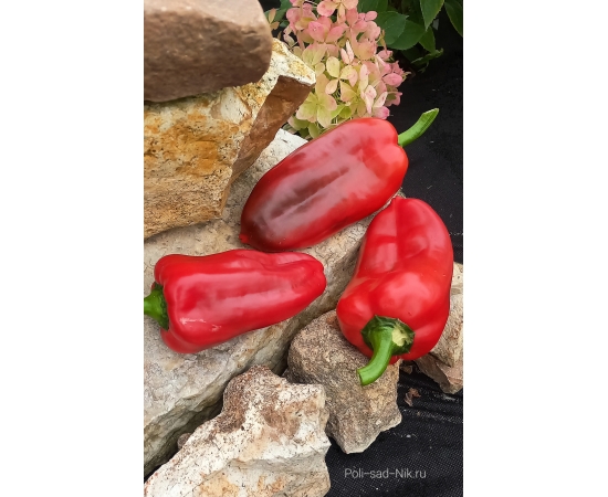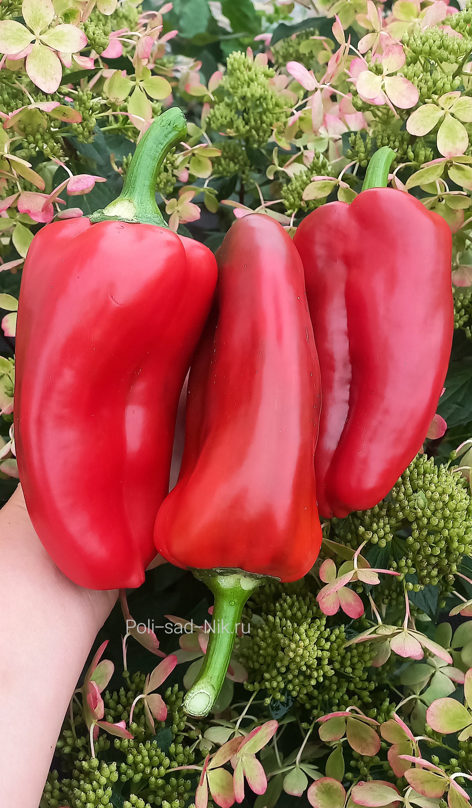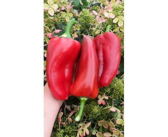 Среднего срока созревания. Куст крепкий, высотой около 80 см. Плоды ярко- красные, глянцевые, крупные до 300 гр. Толщина стенки около 8 мм. Вкусные, сладкие, сочные. Отличная урожайность и длительное плодоношение! Прекрасный сорт!