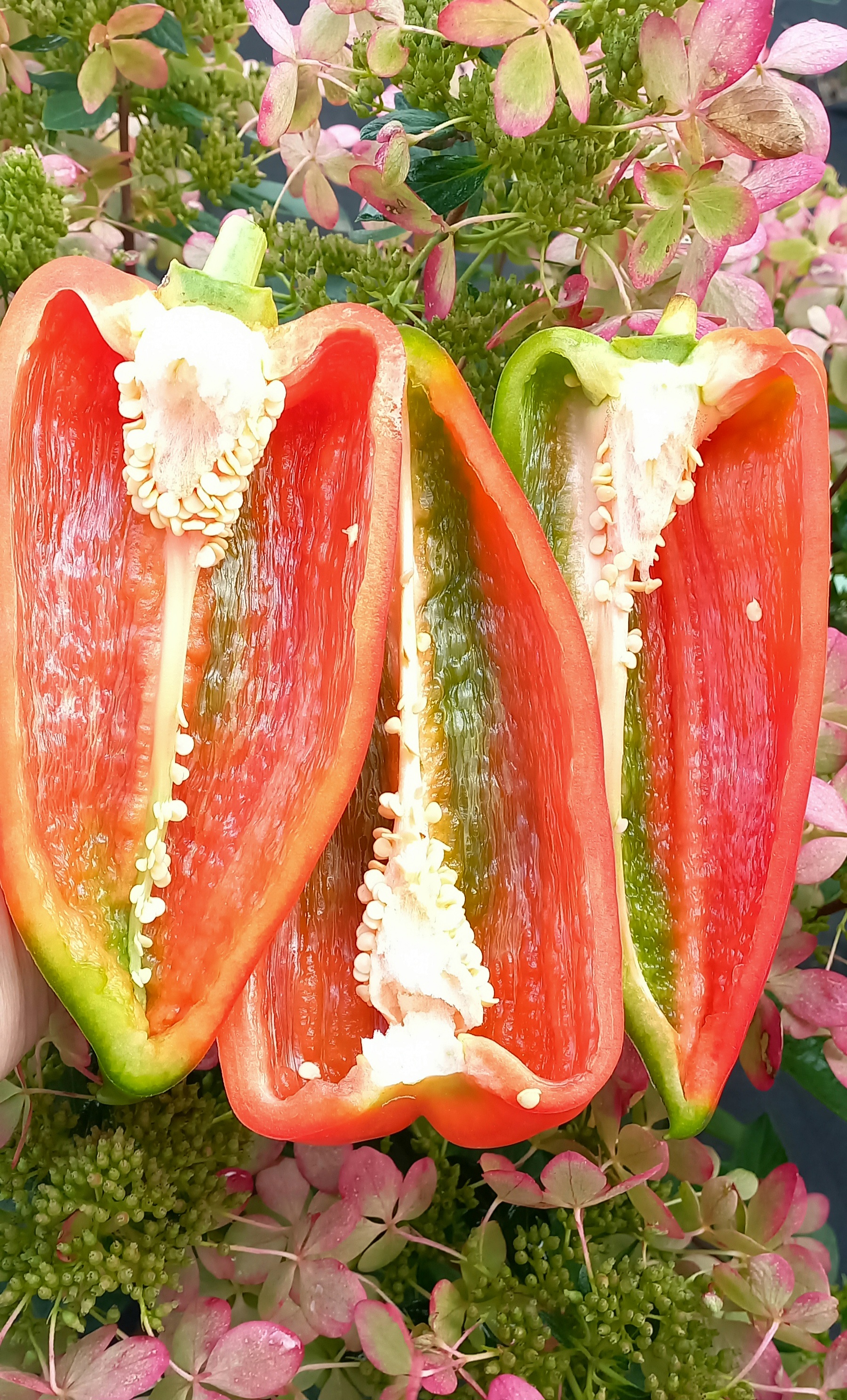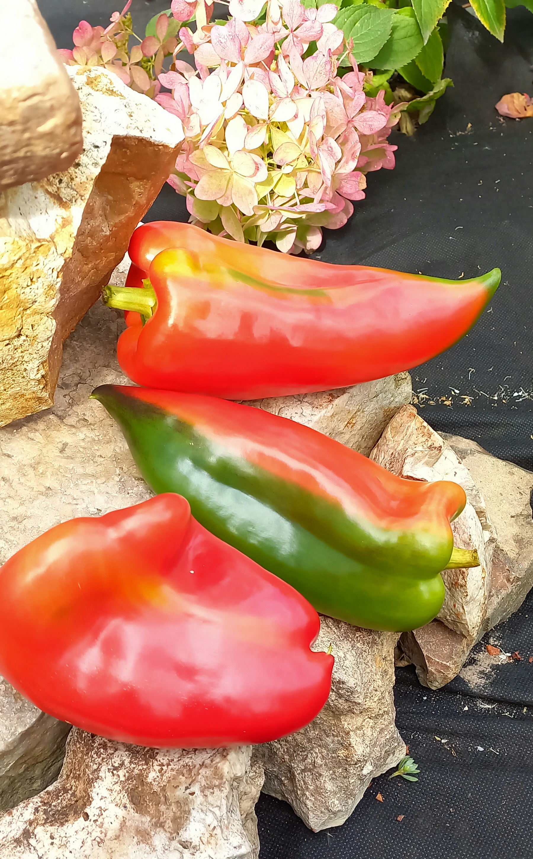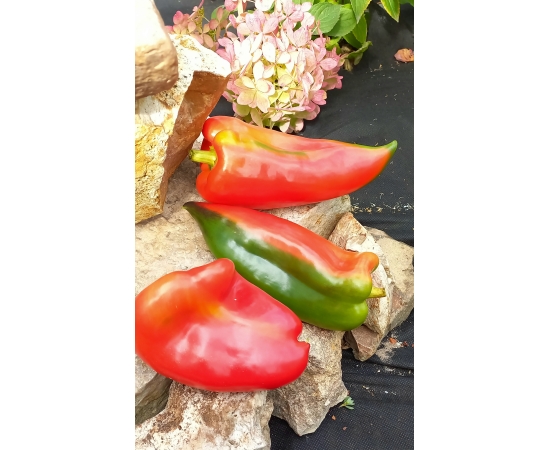Среднеспелый сорт. Высота растения около 60 см. Плоды в технической спелости зеленого цвета, в биологической – красного цвета, конусовидной формы, размером 20 см, высокоурожайный. Универсального назначения!