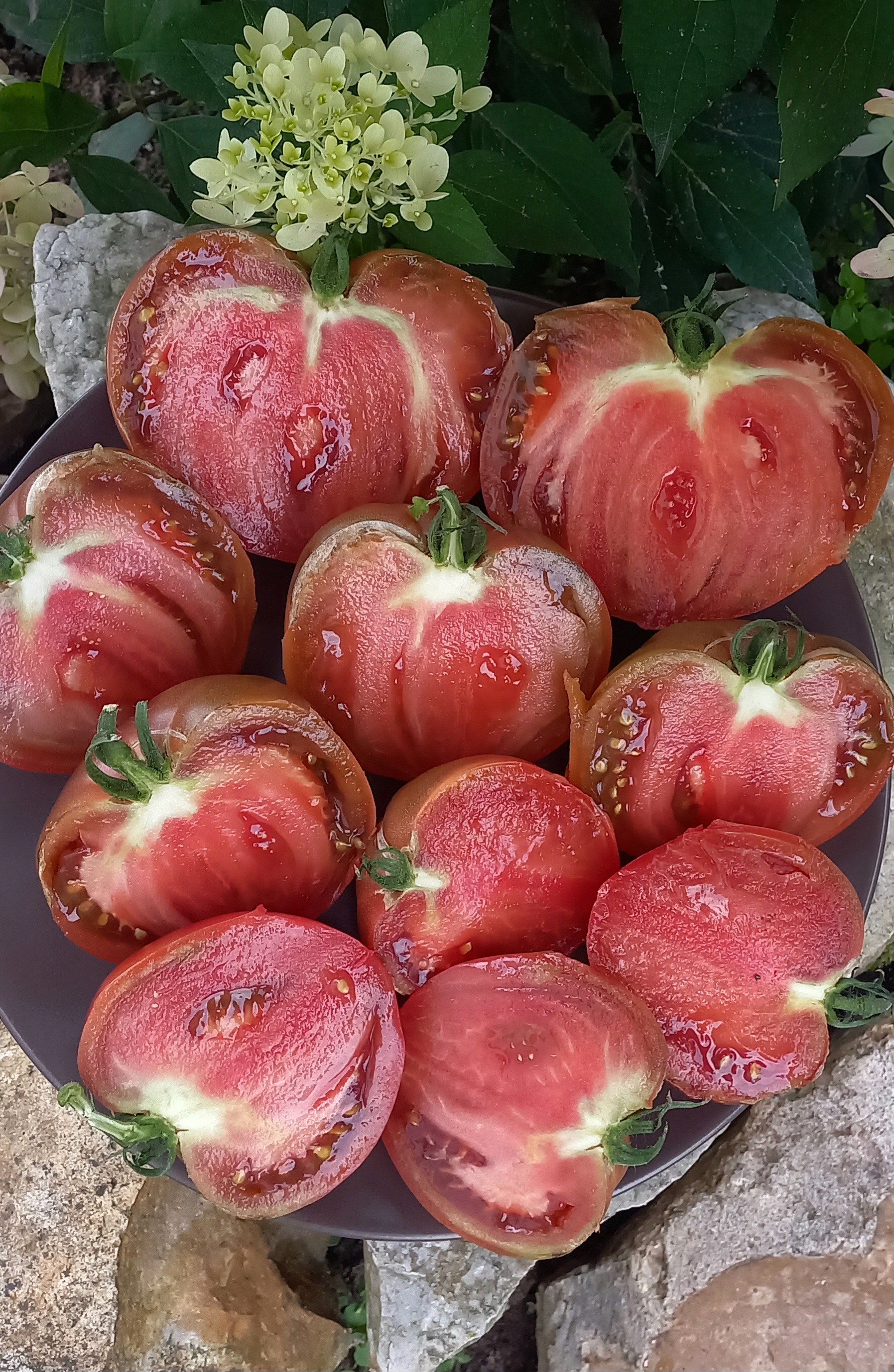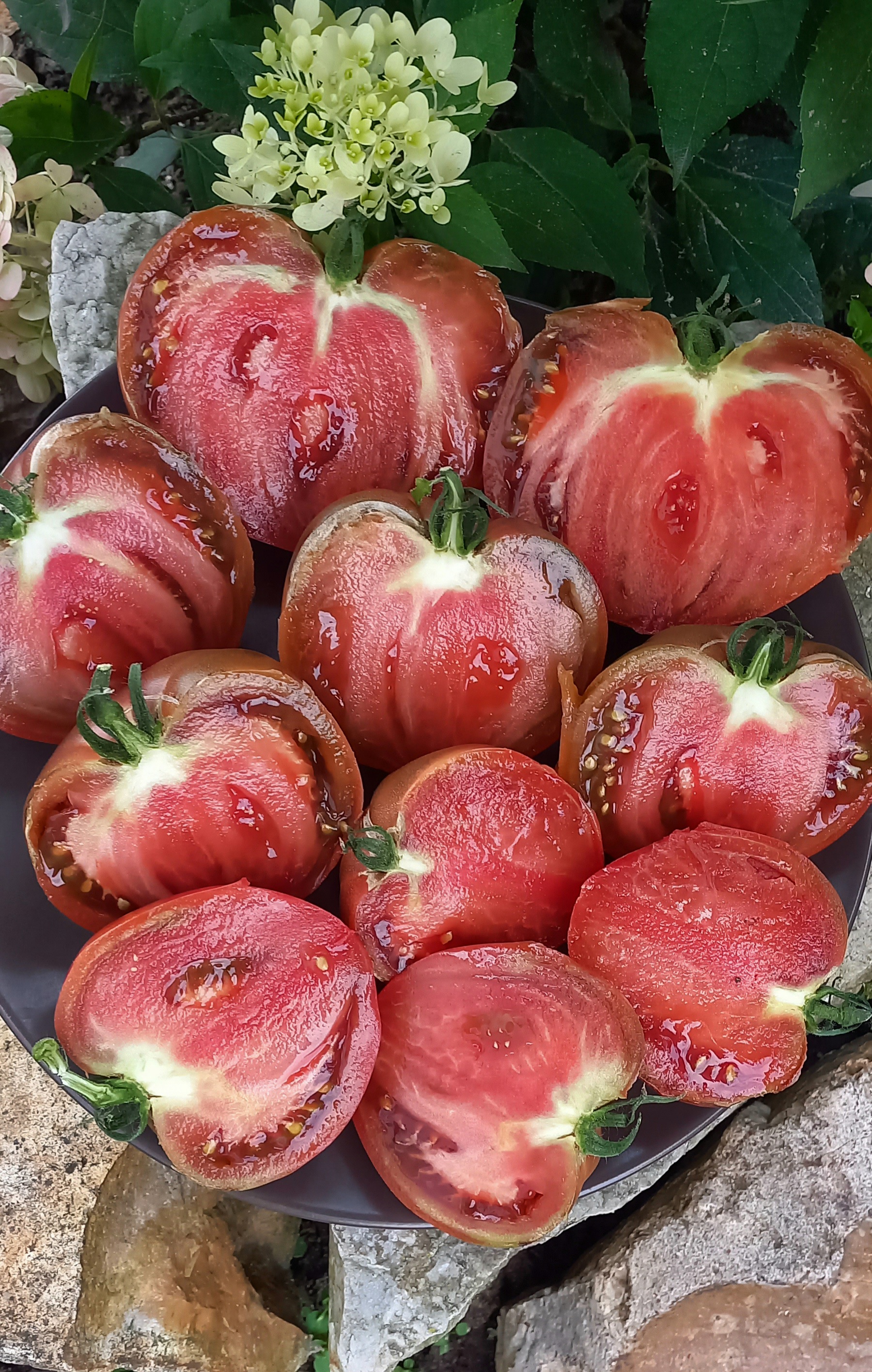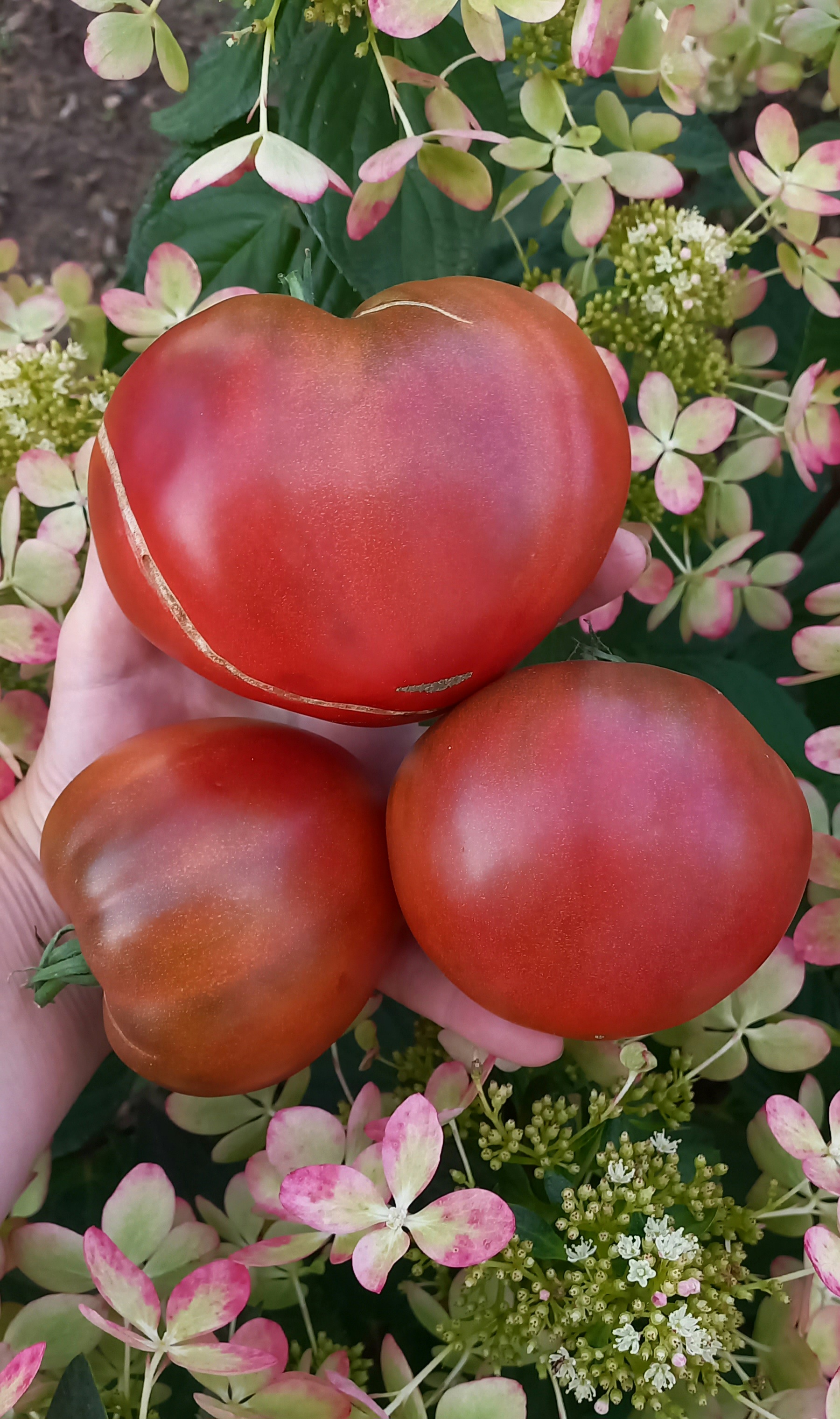 Среднего срока созревания. индетерминантный. Куст крепкого строения, очень урожайный. Плоды тёмно- кирпичного цвета. массой 300-400 гр. Мякоть мясистая, сочная, ароматная. Вкус насыщенный, пряный. Очень вкусные томаты. Универсального назначения.