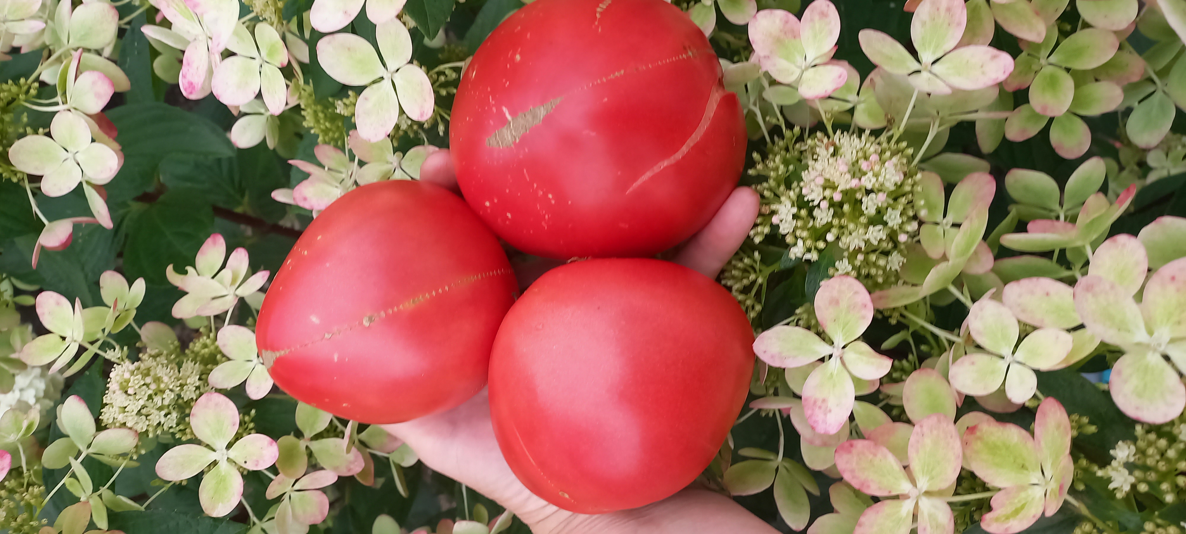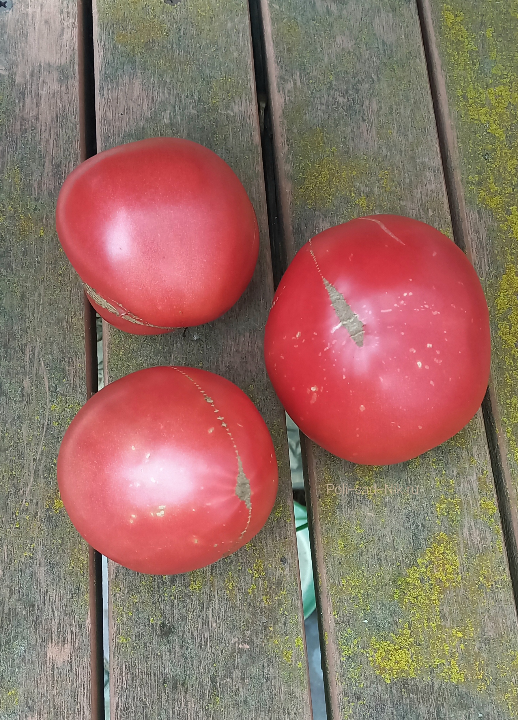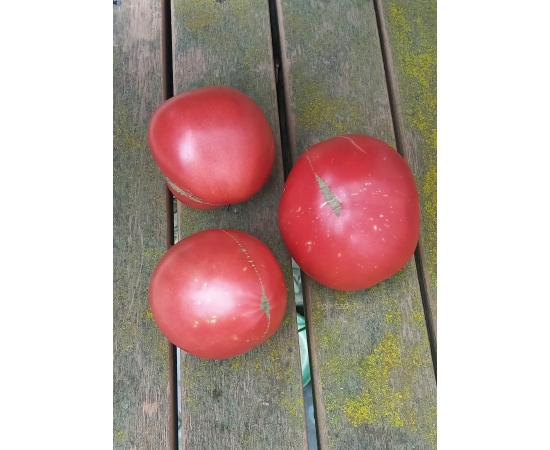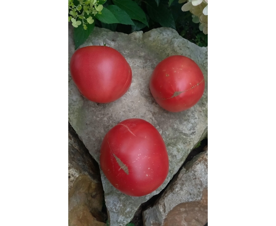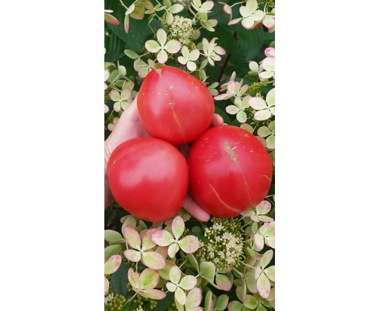 Среднеспелый, индетерминантный сорт.Куст крепкого строения. Плоды сердцевидные, малиново-красные, массой 200-300 гр. Мякоть сочная, мясистая. вкусная. Семян в плодах мало. Сорт неприхотливый, урожайный. Универсального назначения.