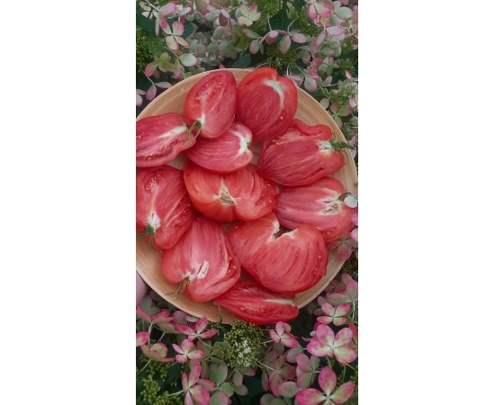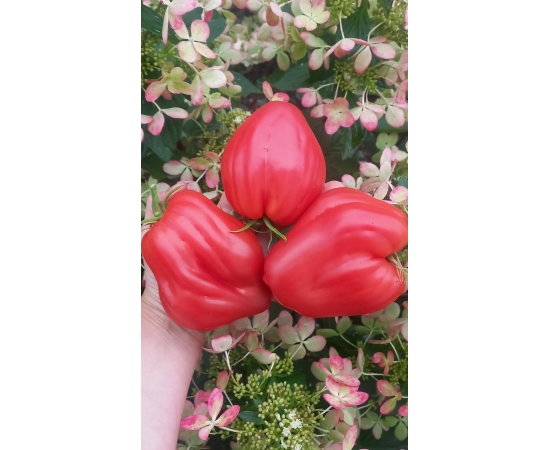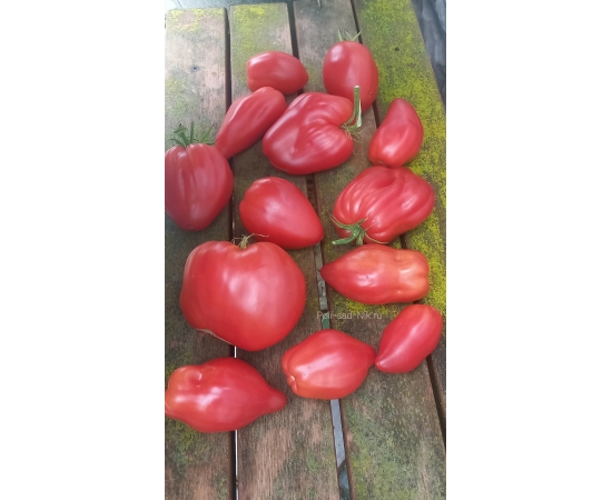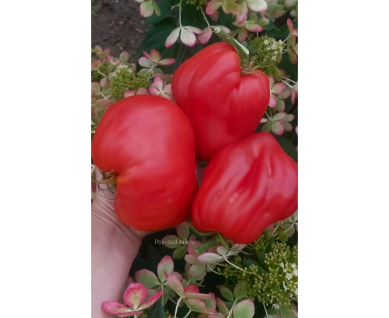 Сорт среднеспелый. индетерминантный. Высокий, крепкий куст. Отличная урожайность. Плоды массой 300-400 гр. Очень красивые, перламутрово -розовые. Мякоть плотная, сочная, сладкая с малым количеством семян! Сорт показал отличную устойчивость к заболеваниям!