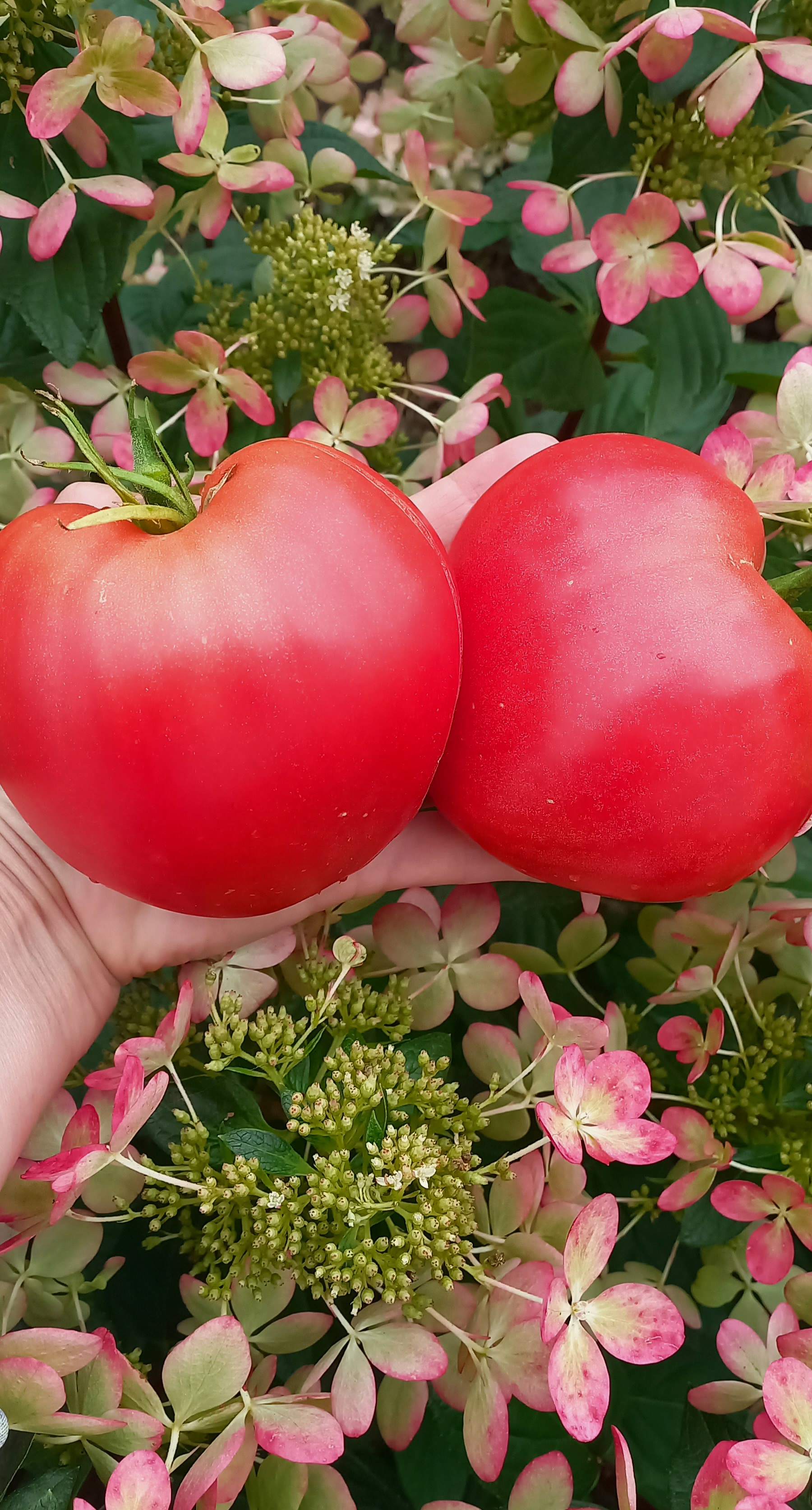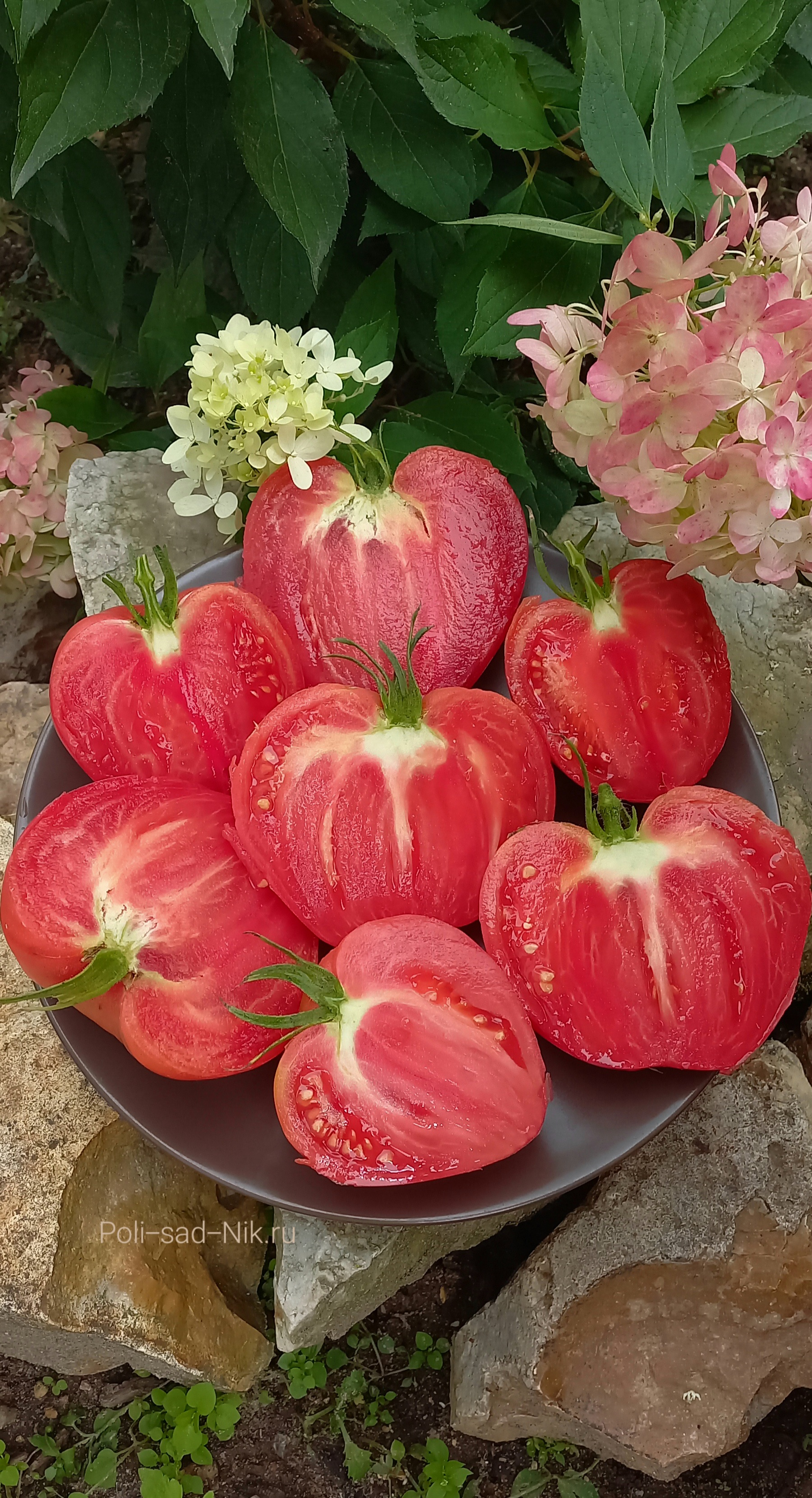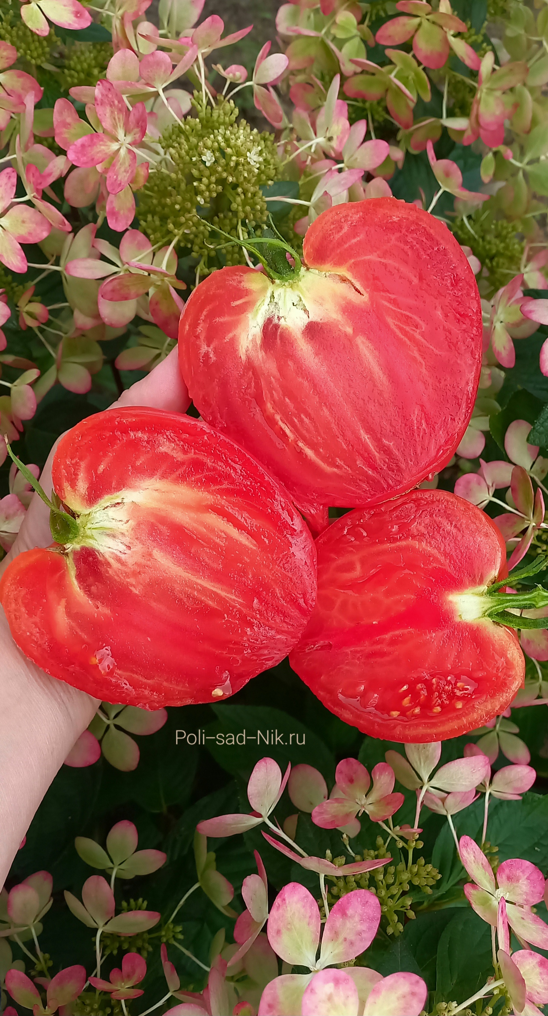 Среднего срока созревания. Куст индетерминантный, тонкого строения. Плоды массой 300-400 гр.сердцевидные, розово-малиновые, характерной формы, часто с тупым носиком. Мякоть сочная, вкусная. Вкус сбалансированный. Универсального назначения.