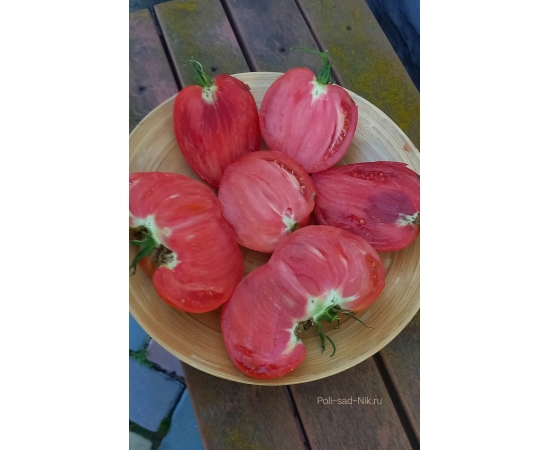 Сорт среднего срока созревания. Индетерминантный. Плоды жемчужно - розовые, вытянутой формы, крупные имеют форму гребня.Массой 300-500 гр.