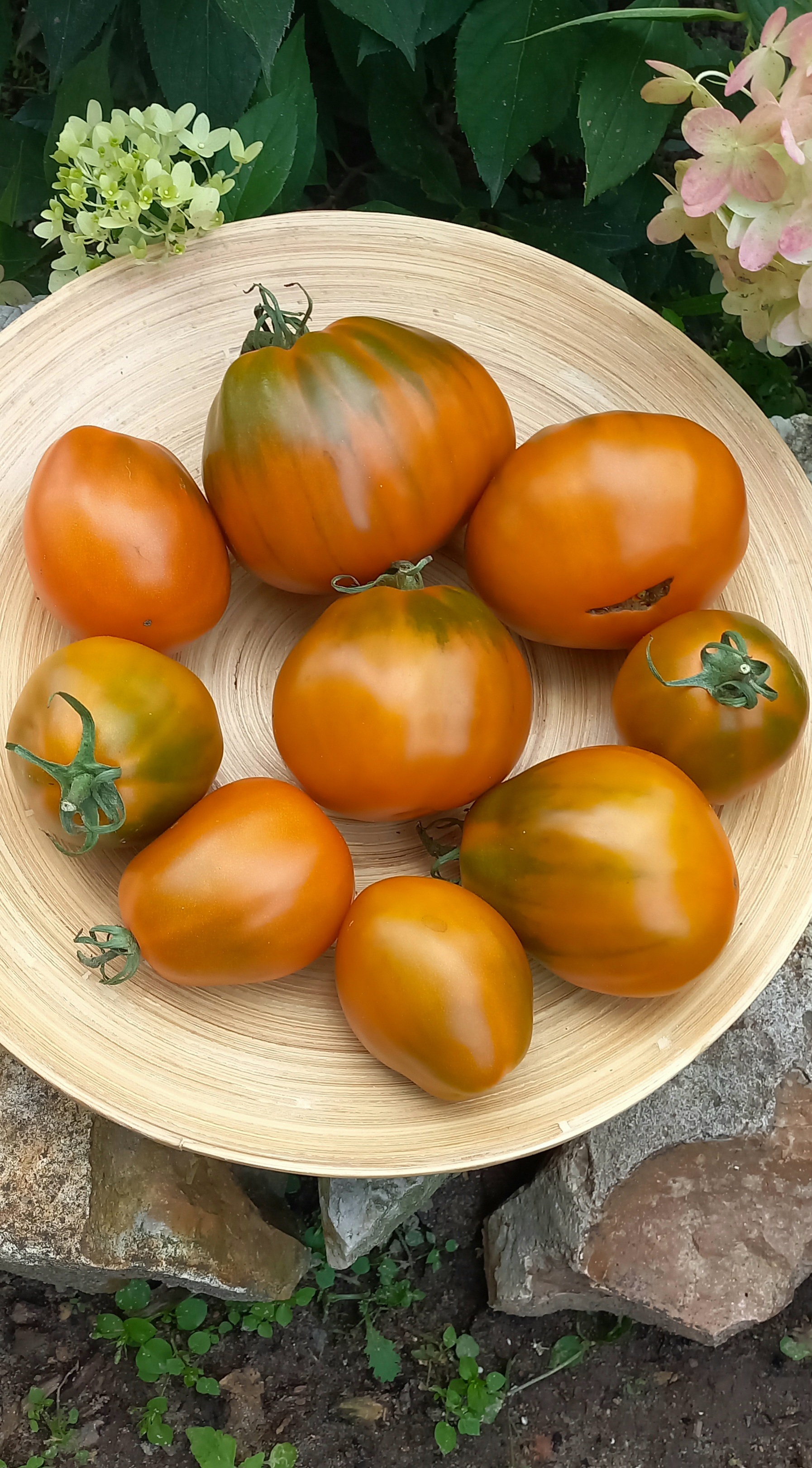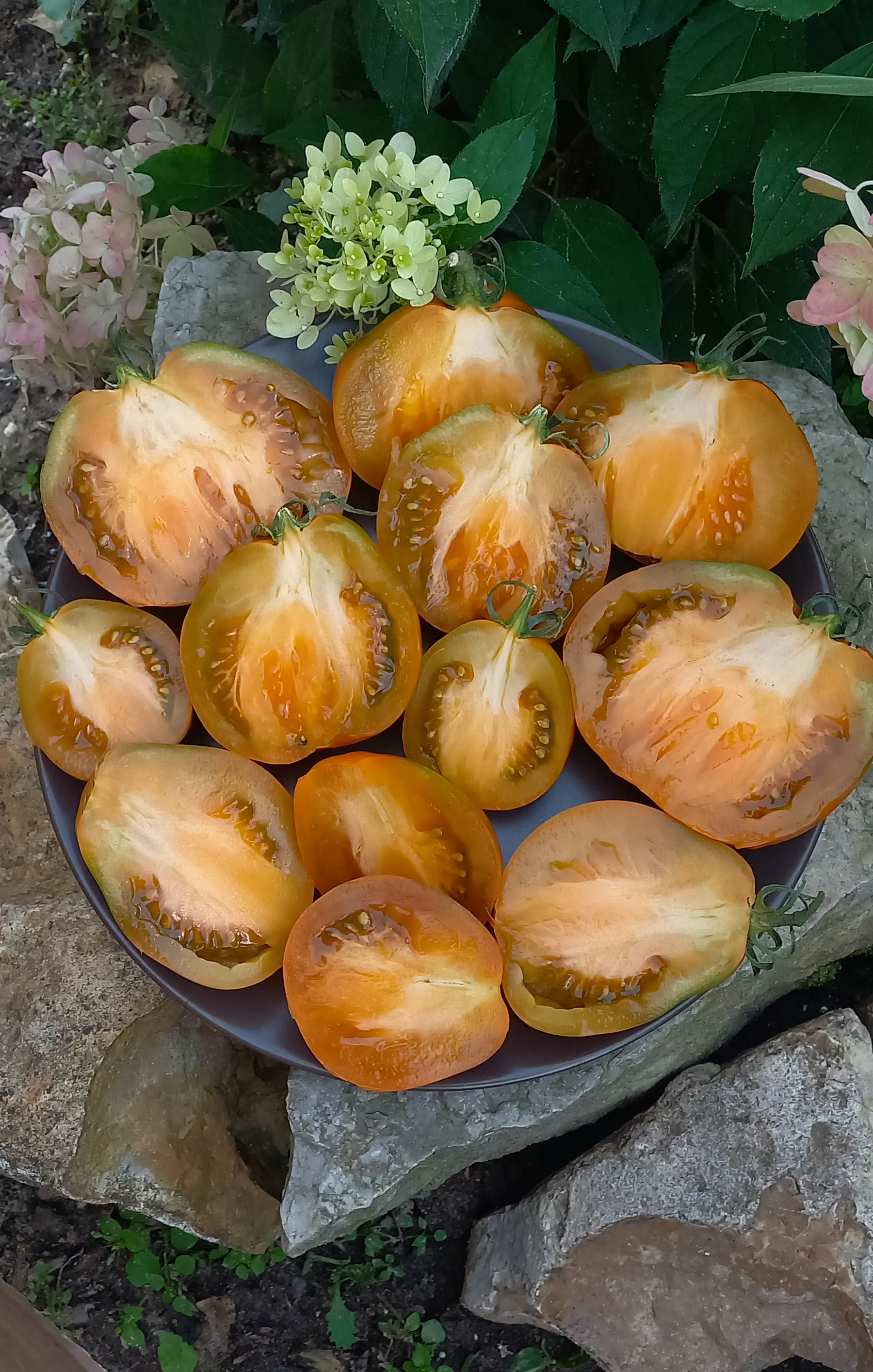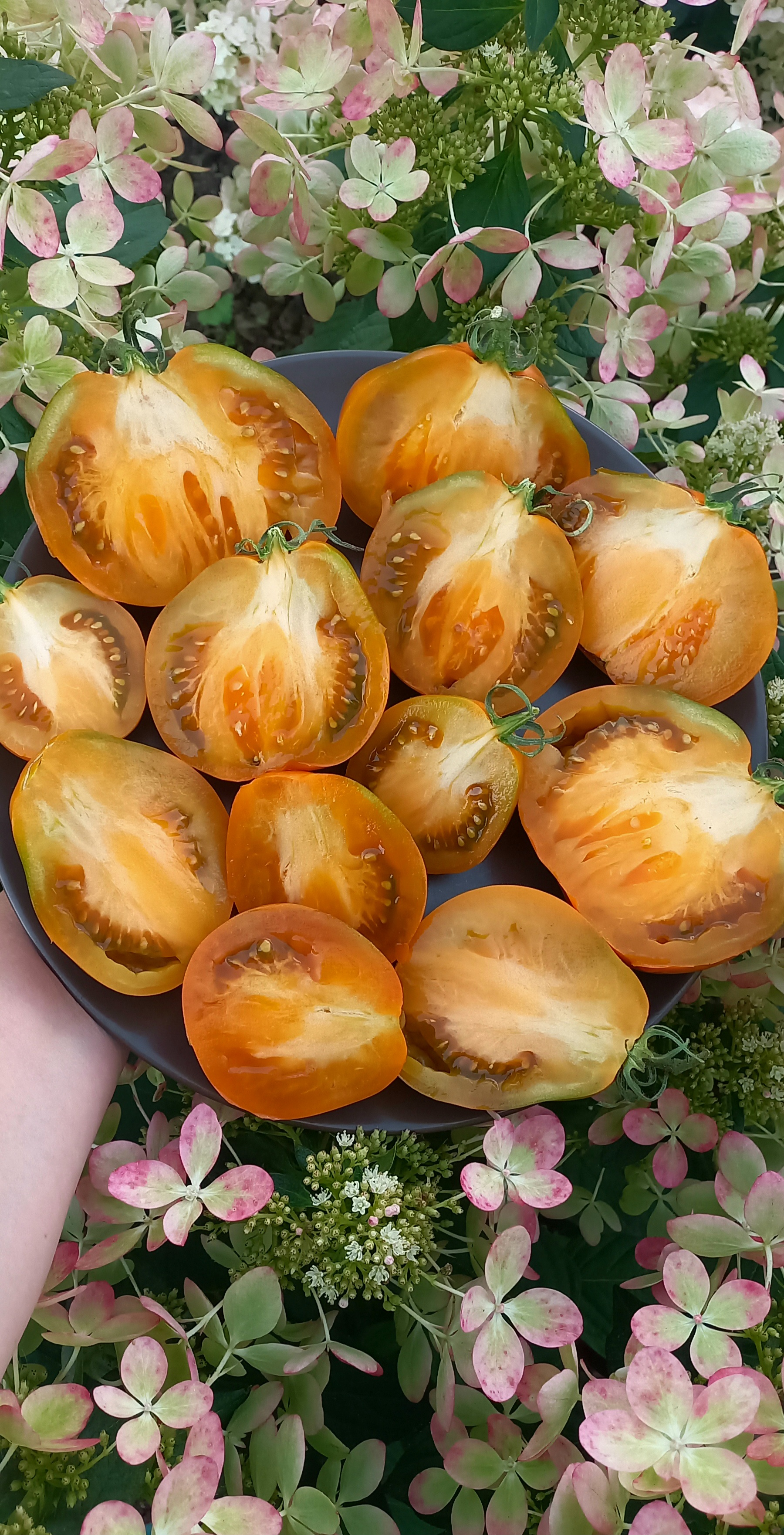 Мякоть горчичного цвета, мясистая, плотная, сочная! Вкус пикантный, фруктовый. Очень красивый, урожайный и вкусный сорт. Универсального назначения.